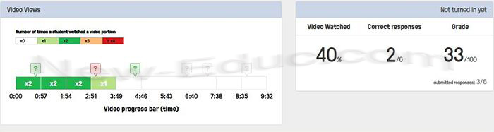 تسمح هذه البيانات للمعلم بتحليل النتائج وتقديم تعليقات أفضل للطلاب… و بالنسبة إلى الطلاب، تجعل هذه الأداة مشاهدة الفيديو أكثر تفاعلية وإثارة وتحفيزًا، وتدفعهم للعمل بجد لأنهم يعرفون أن المعلم يستطيع المتابعة. بالإضافة إلى ذلك، يجب أن يكونوا منتبهين أثناء مشاهدة الفيديو، حيث سيتعين عليهم الإجابة عن الأسئلة المتعلقة بالمحتوى قبل متابعة عرضه. وأخيرًا، بل وأكثر من ذلك فالطلاب غالبًا ما يكونون فضوليين لمقارنة أدائهم بأداء الصف بأكمله.
