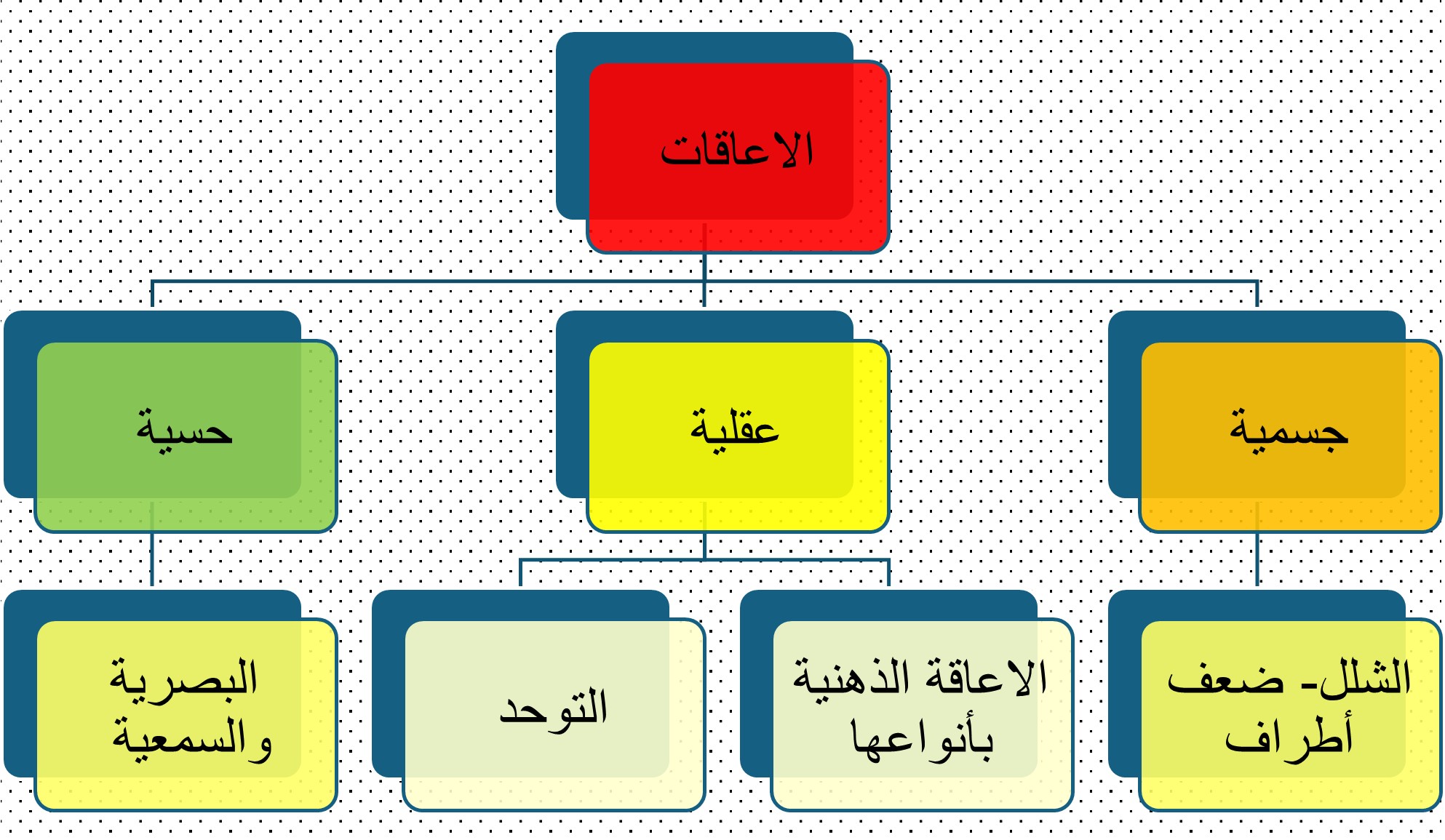 وتنقسم الاعاقات طبيًا إلى ثلاثة أنواع يتضمنهم الشكل التالي: