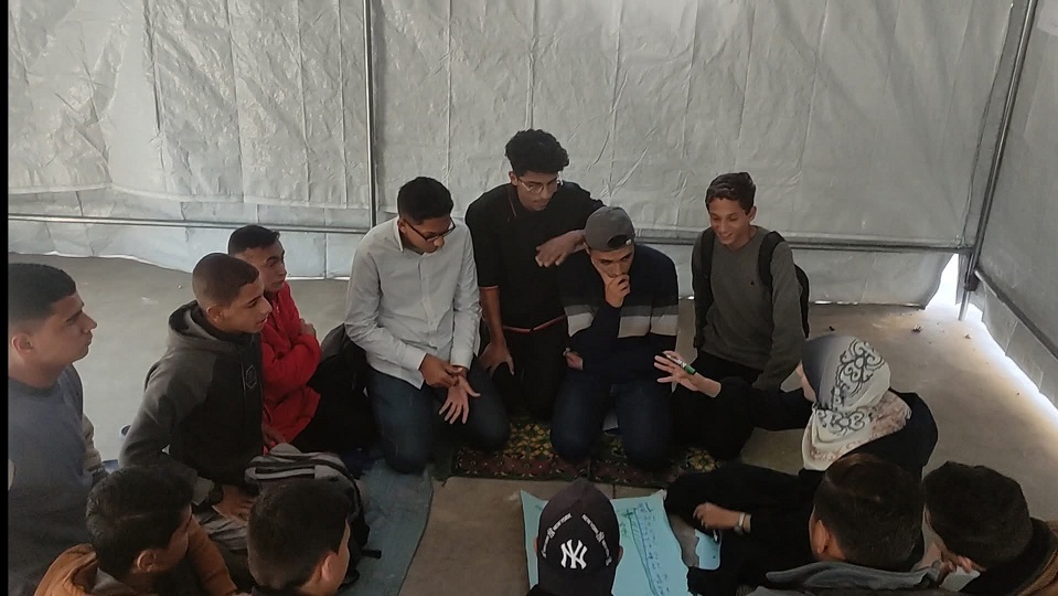 قالت الطالبة فاطمة، 16عاماً في مونولوج مؤثّر -كأحد أنشطة سياق درامي كنّا نعمل عليه- حول معاناتها أثناء التعلّم في خيمة: