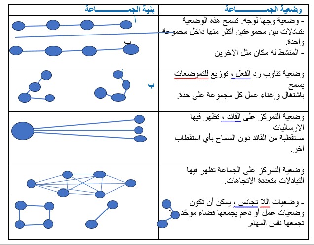 الجماعة: مجموعة من الأفراد مدفوعين لتحقيق هدف مشترك عن طريق أنشطة مرتبطة ومتفاعلة.
